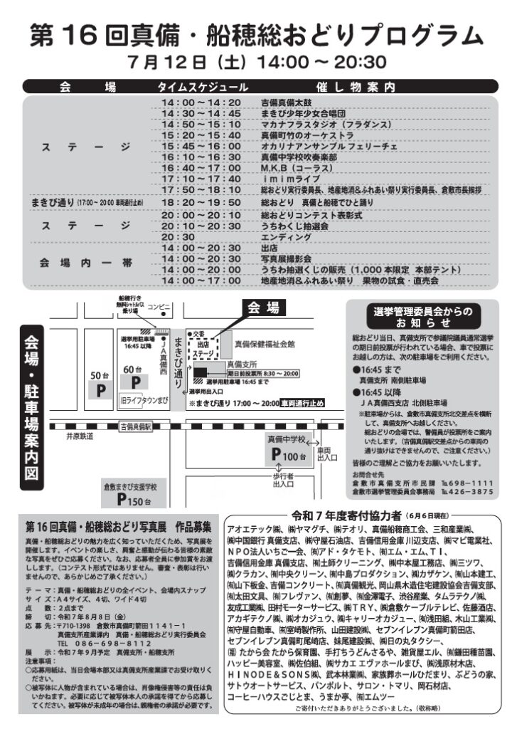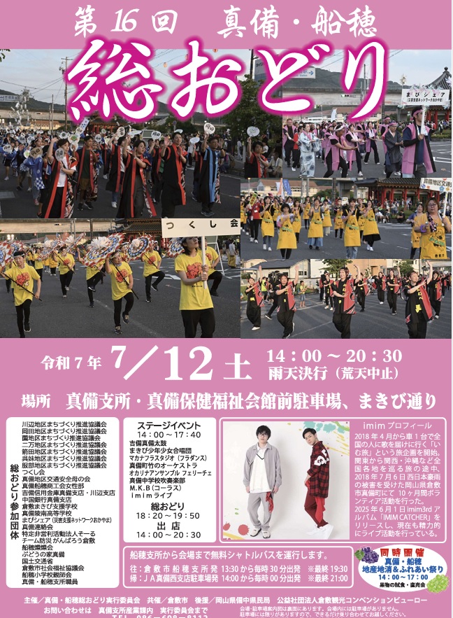 2025年7月12日(土)、第16回真備・船穂総おどりに素隠居が登場します。